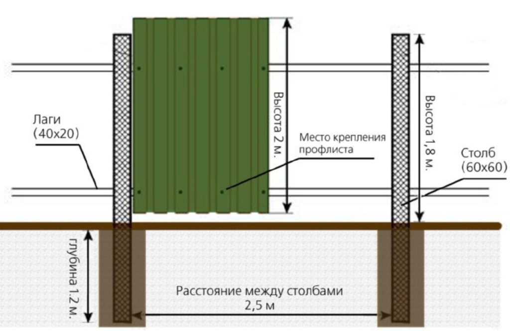 Расстояние между столбами для забора из профнастила